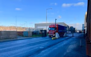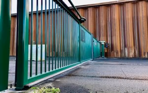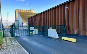 Gate from KIBO: HTC folding gate with a clear opening of 12 meters to the Port of Kolding.
