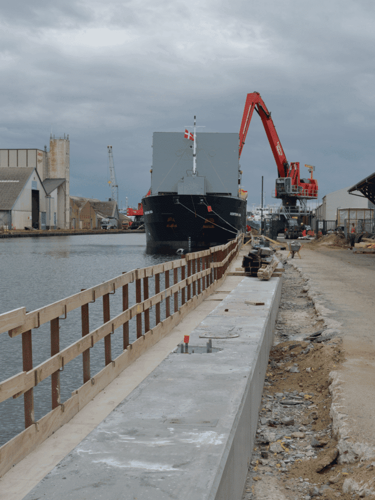 Hele højvandssikringen forventes færdig i løbet af november 2025 og meldingerne er, at arbejdet går planmæssigt. Vi har i disse sommertider haft heftig regn, tordenbyger og lejlighedsvise skybrud, så det er værd at huske pumpeslusens anden funktion: den kan pumpe store mængder regnvand fra Kolding Å ud i fjorden, så vi undgår oversvømmelser i byen af regnvand opsamlet i åen. På havnen glæder vi os over, at højvandssikringen snart er færdig – den er et fundament under strategien for den fremtidige udvikling.
