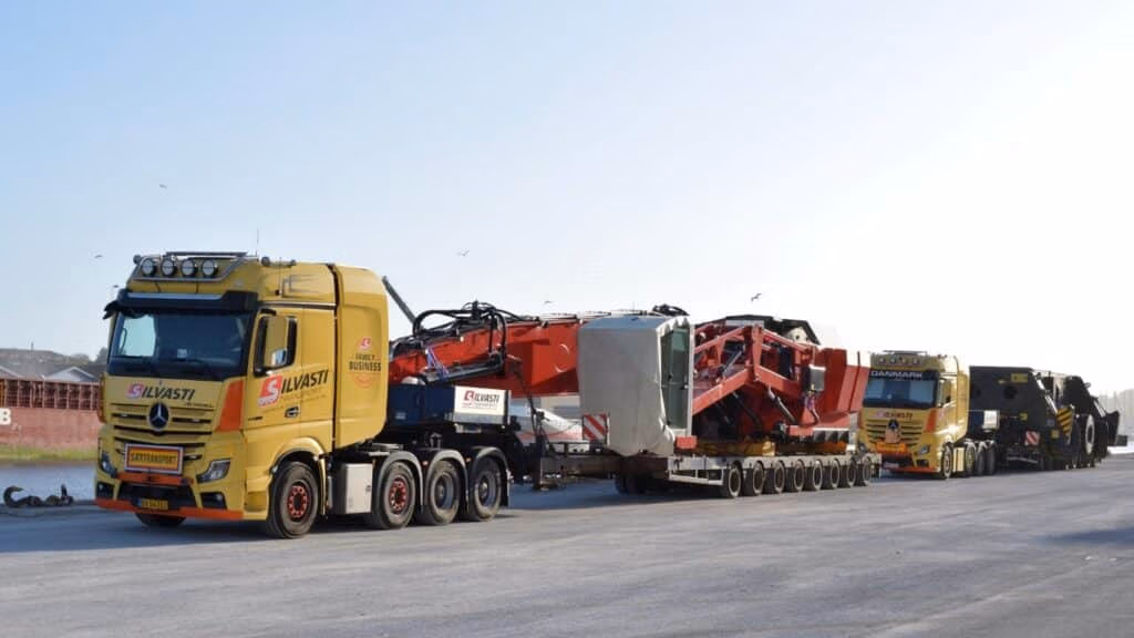 De to første røde kraner blev sejlet direkte fra Finland til Kolding Havn – hvorfor ankommer kran nummer tre så på lastbiler med specialtransport fra Tyskland? Forklaringen er den enkle, at kranen har været anvendt som udstillingsmodel på den store Bauma 2025 messe i München, hvor havnedirektør Heino Svenningsen symbolsk fik overrakt nøglerne til kranen.
